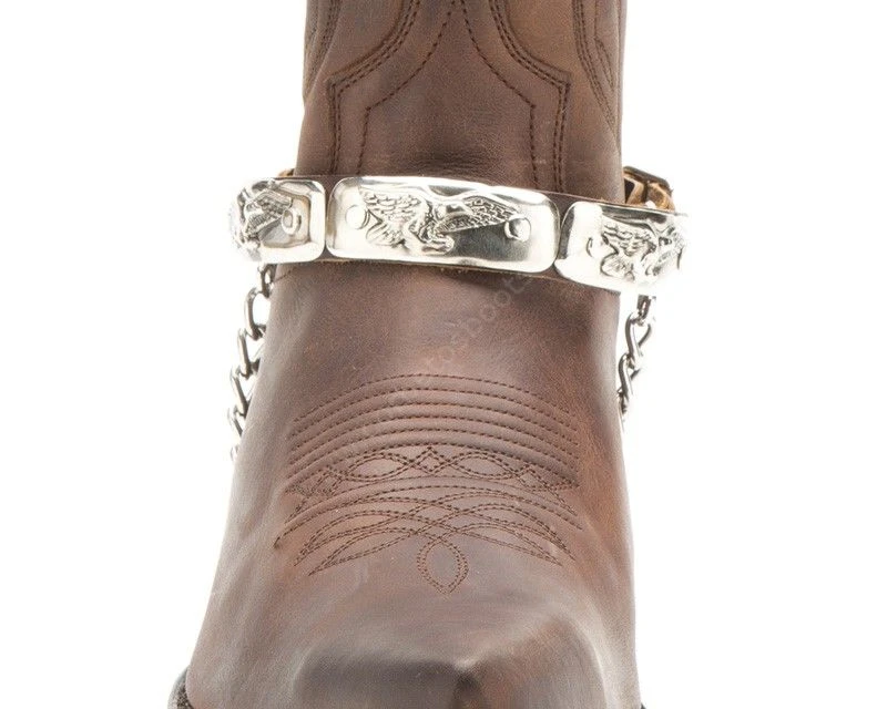 - Haz que tus botas marrones y de tonos oscuros sean todavía más impresionantes gracias a estos arneses decorativos Sendra con chapas rectangulares brillantes con un águila en relieve en cada una de ellas. Sentirás que tus botas se transforman por completo.