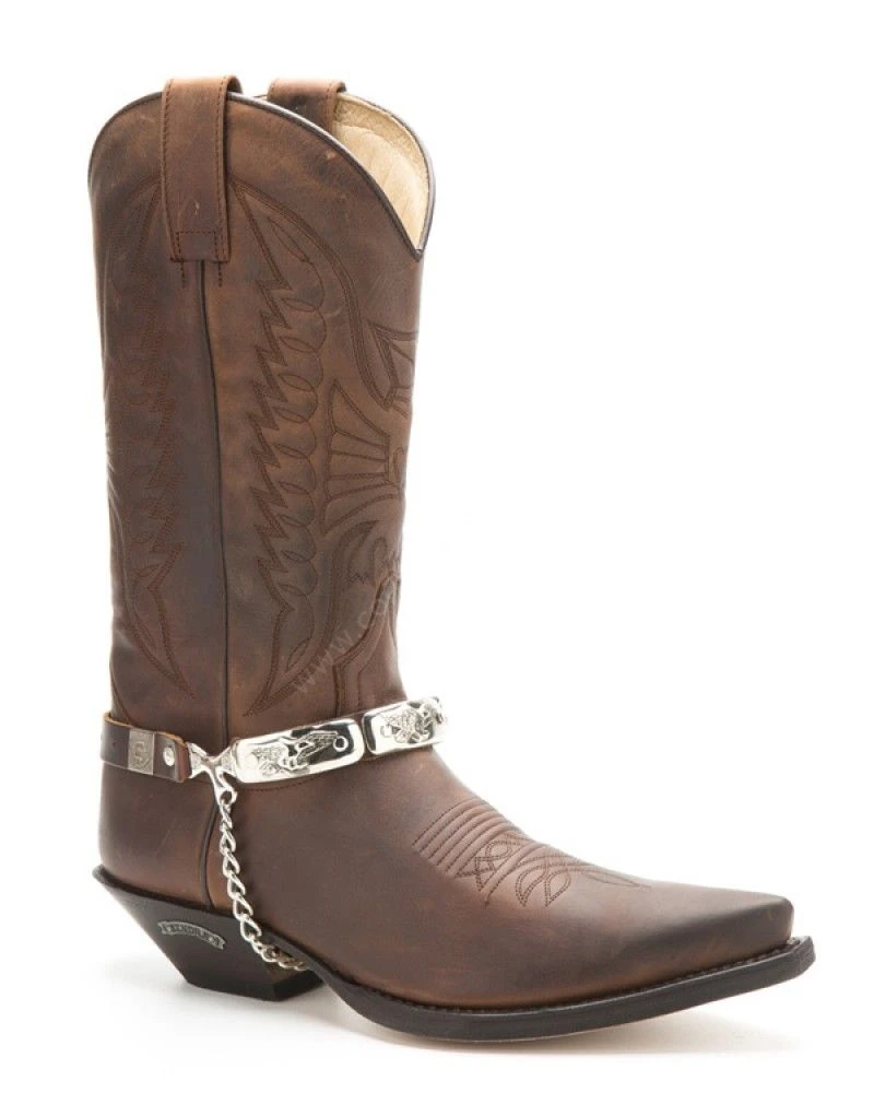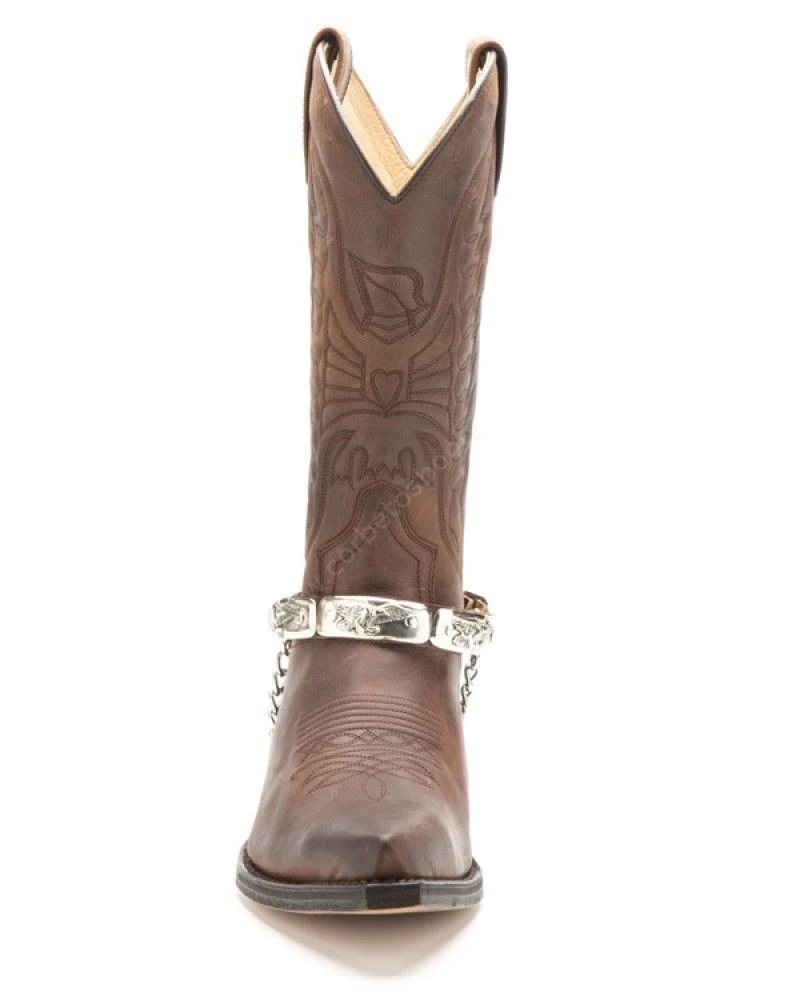Arneses Para Bota Vaquera Cuero Marrón Con Chapa águila En Relieve Sendra
