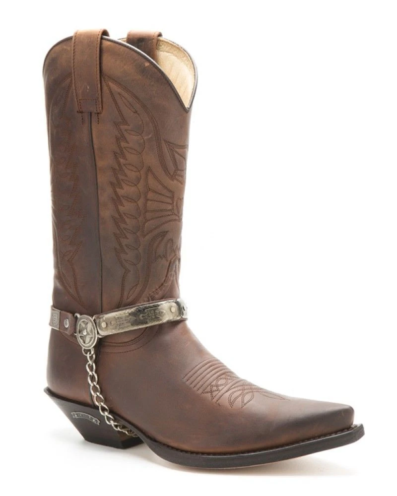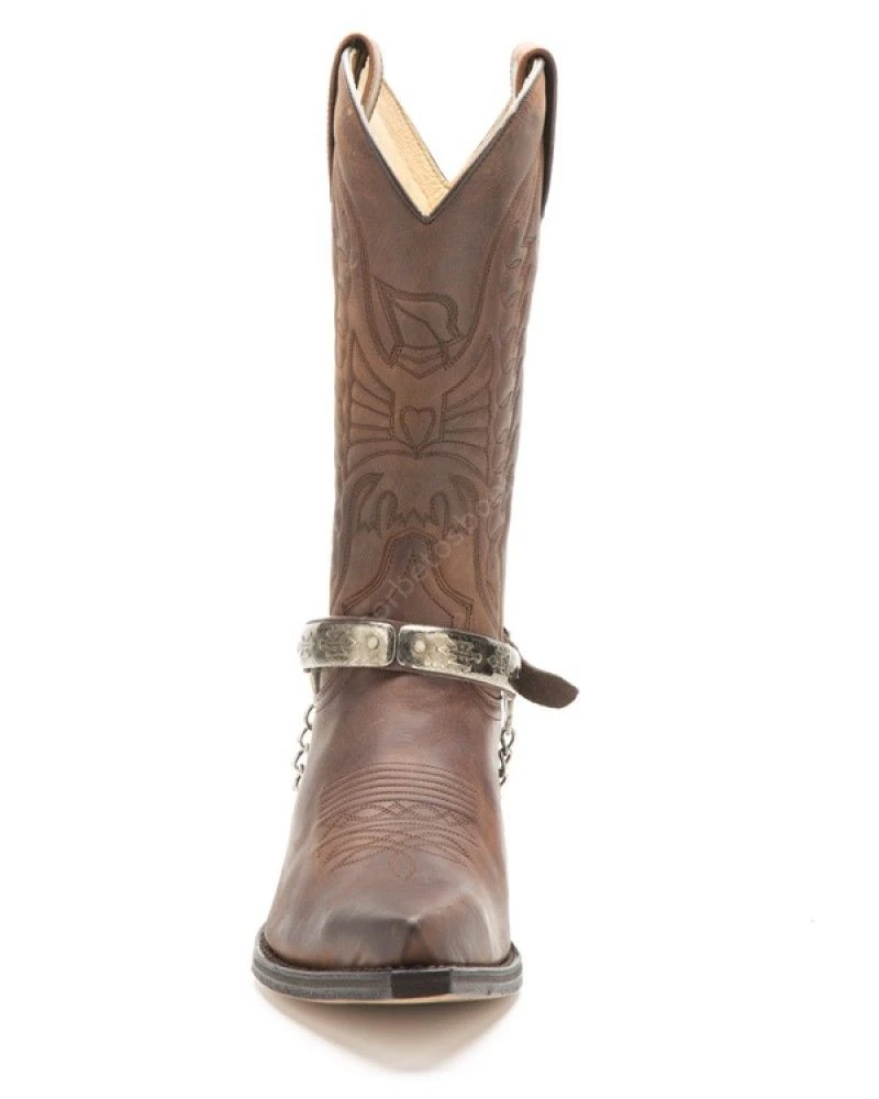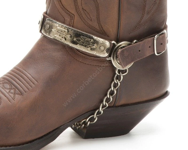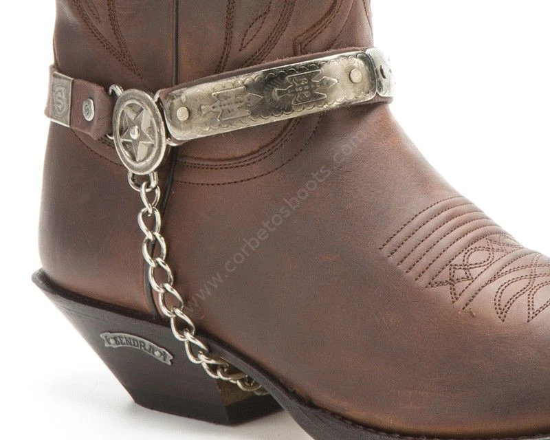 - Haz que tus botas marrones o de tonos oscuros sean todavía más impresionantes gracias a estos arneses decorativos Sendra con chapas rectangulares brillantes con un mosaico nativo americano grabado en cada una de ellas, y un concho decorativo con estrella en cada lateral. Sentirás que tus botas se transforman por completo.