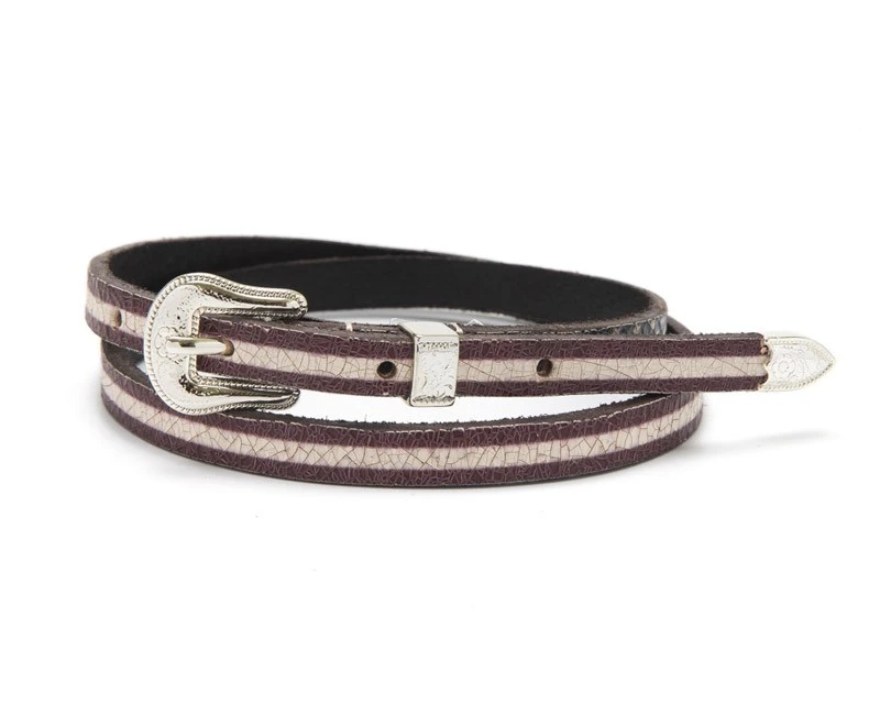 - Para ser más americano/a que los propios americanos, y si quieres darle un puntazo a tu pasión por el line dance o la estética cowboy, hazle decir a tu sombrero western un «howdy» con esta fabulosa cinta de cuero de look envejecido que representa las barras y estrellas de la bandera de los Estados Unidos.