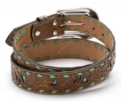 Cinturón Cowboy Original Belts Combinación Ante Marrón Y Cuero Color Coñac