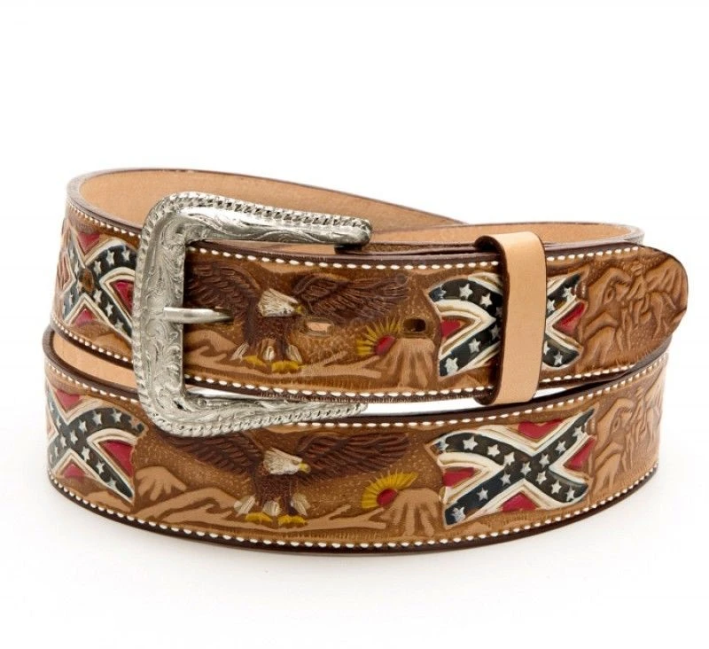 Cinturón De Cuero Stars & Stripes Bandera Confederada