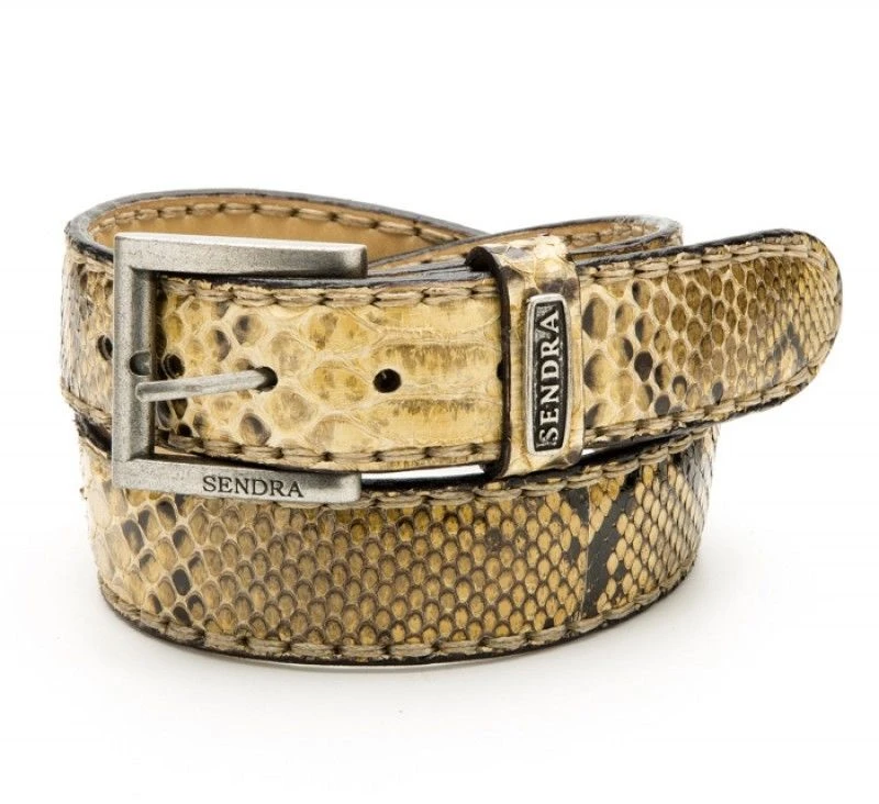 - Si le dedicas la mejor calidad a tu calzado, otro tanto se merecen tus vaqueros y pantalones de vestir con este fabuloso cinturón western de Sendra con hebilla clásica, hecho con piel real de pitón color amarillento.