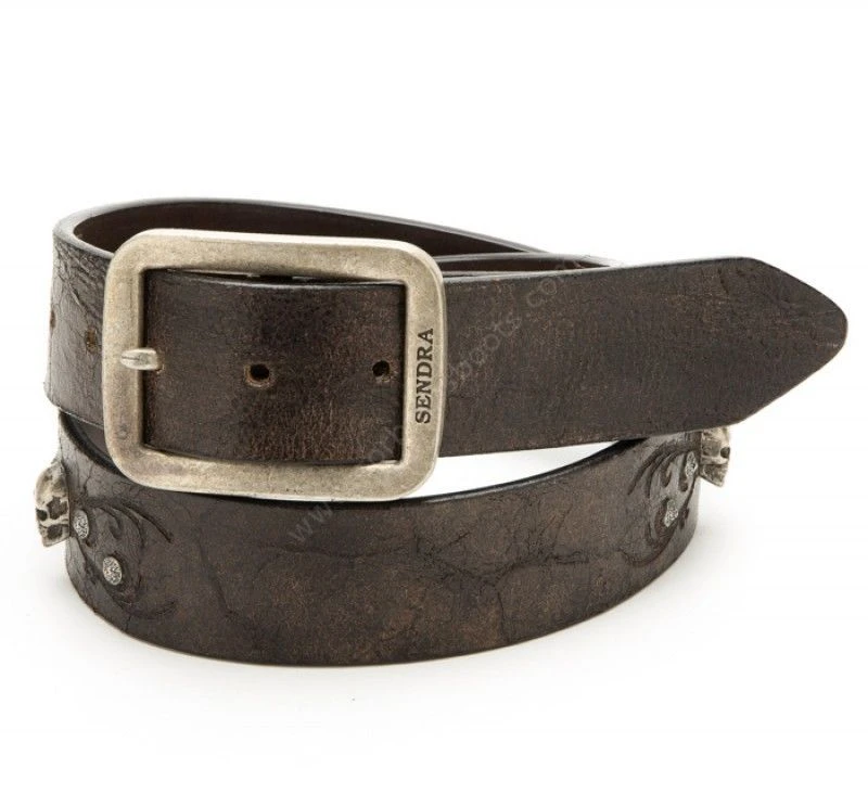 - Si le dedicas la mejor calidad a tu calzado, otro tanto se merecen tus vaqueros y pantalones de vestir con este fabuloso cinturón de Sendra con hebilla doble, hecho en cuero vacuno color marrón craquelado y con apliques metálicos en forma de calavera, para darle un aire tremendamente rockero.