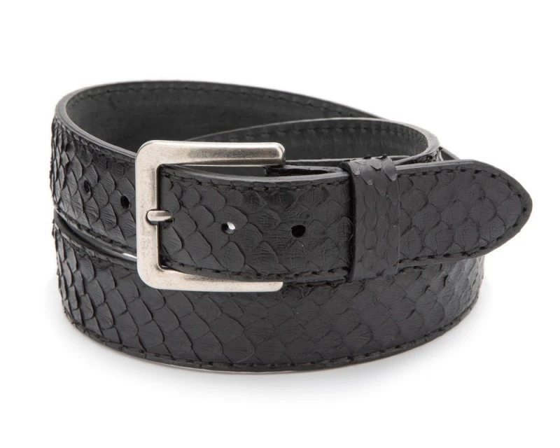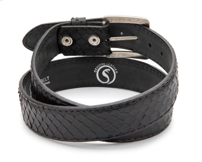 Cinturón Unisex Artesanal Piel De Pitón Negro