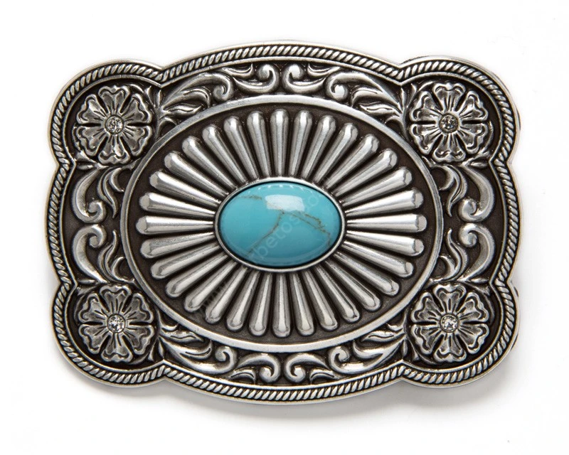 Hebilla Vaquera Concho Plateado Con Piedra Azul Y Filigranas