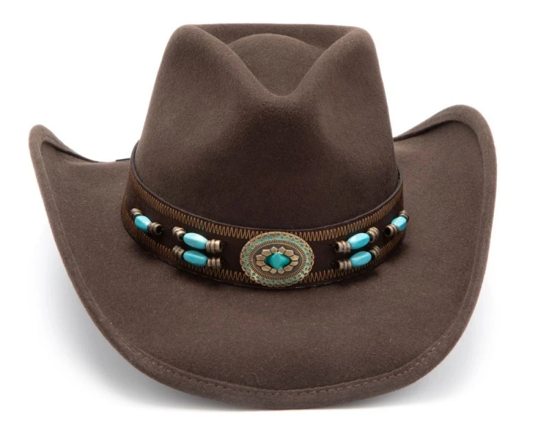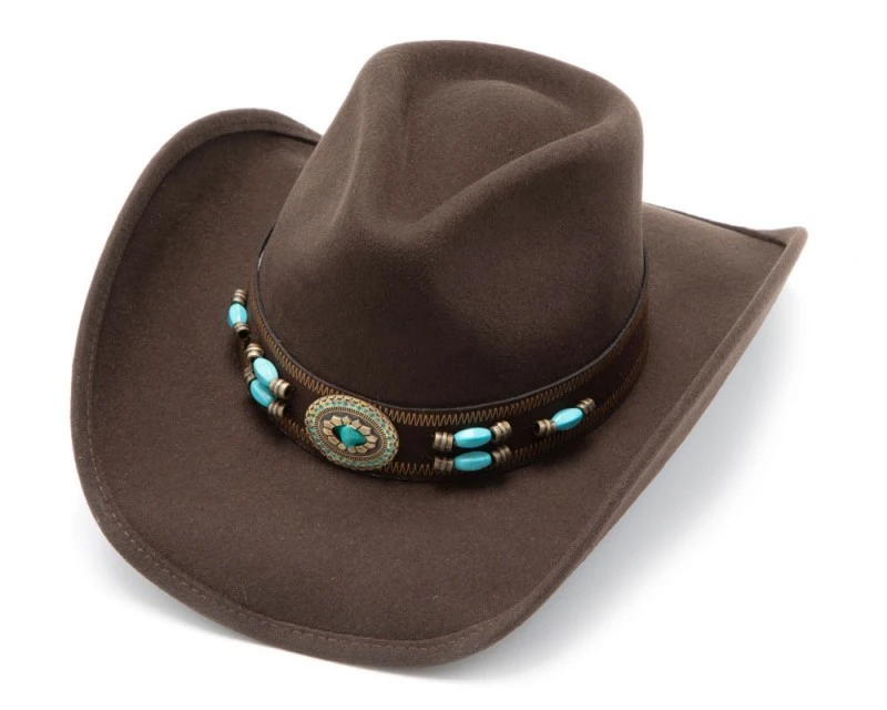 Sombrero Fieltro Marrón Moda Cowboy Con Piedras Talladas Azules