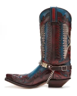 Arneses Cowboy Para Bota Cuero Marrón Sendra Con Turquesas Grandes