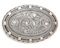 Hebilla Plateada Centro Liso Con Marco Festoneado En Relieve