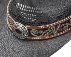 Sombrero Rodeo De Lienzo Negro Endurecido Con Cinta Elástica