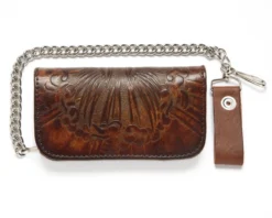 Cartera Con Cadena Cuero Vintage Marrón Con Grabado águila Volando