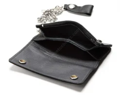 Cartera Con Cadena Básica Cuero Liso Negro Hecha En Estados Unidos