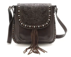 Cartera Americana Marrón Con Cadena Grabado Longhorn Y Paisaje Del Oeste