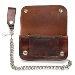 Cartera Cuero Marrón Envejecido Sin Corchetes Visibles Con Cadena